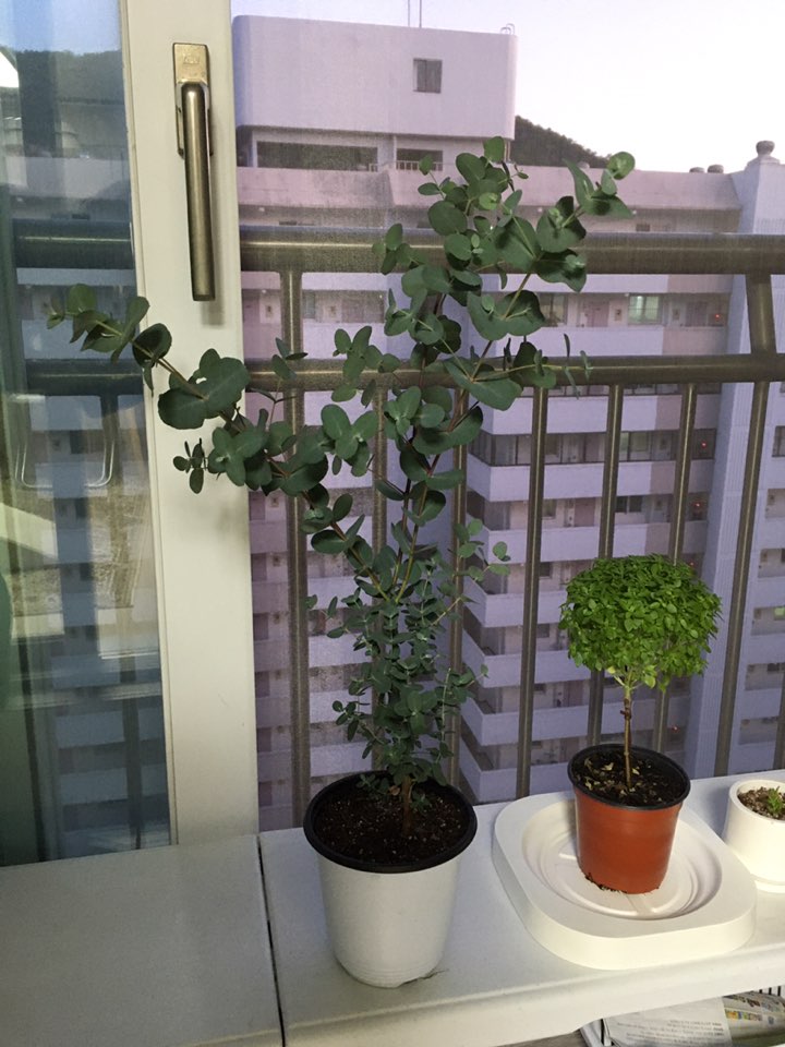 키가 엄청 크죠? 꽃집을 갔더니 두가지 화분을 보여주셨는데 하나는 수형이 이쁘지만 접목이 된 유칼립. 하나는 접목되지 않았지만 수형관리가 안 돼있는 유칼립이었어요.